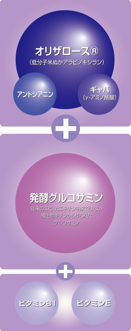 オリザロース®とは、古代米の一種である紫黒米「朝紫」を原料とし、独自の発酵法で抽出された成分「低分子米ぬかアラビノキシラン」です。